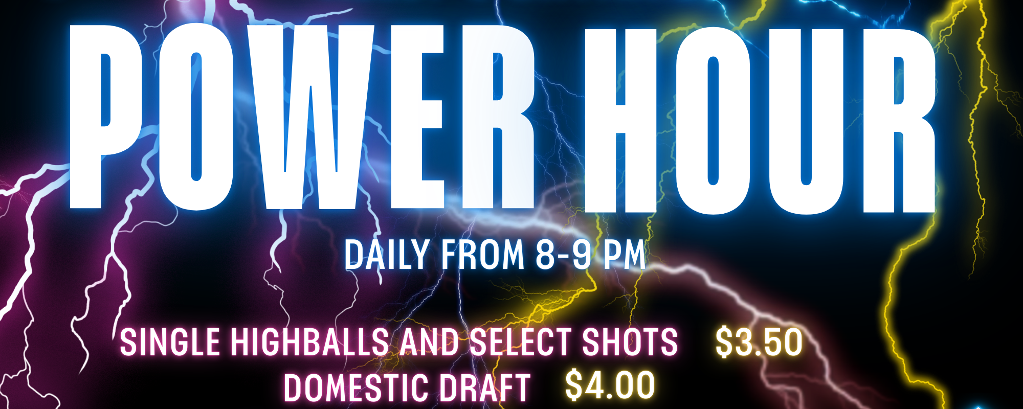 Join us from 8-9pm Daily for $3.50 Single Highballs and Select Shots and $4.00 Sleeves of Domestic Draft!